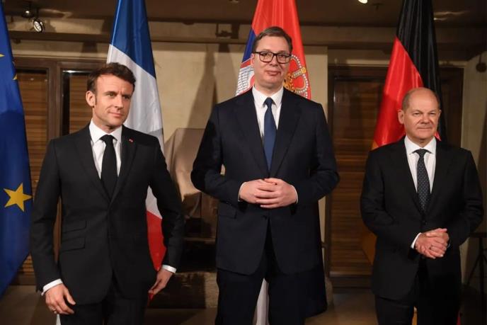 Predsednik Srbije Aleksandar Vučić sastao se sa predsednikom Republike Francuske Emanuelom Makronom i kancelarom SR Nemačke Olafom Šolcom na Minhenskoj konferenciji o bezbednosti.