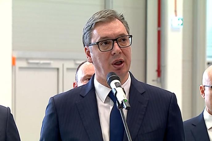 BEOGRAD - Predsednik Srbije Aleksandar Vučić obratio se novinarima posle svečanog otvaranja megafabrike Kontinentala u Novom Sadu, investicije vredne skoro 150 miliona evra u kojoj radi skoro 1.000 vrhunskih srpskih inženjera.