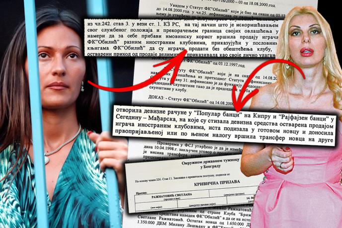 - Postoji osnovana sumnja da je prvoprijavljena Svetlana Ražnatović u svojstvu predsednice Fudbalskog kluba Obilić iz Beograda, Ul. gospodara Vučića broj 189, u periodu od 25. 7. 1998. pa do 1.3. 2003. godine izvršila krivično delo zloupotrebe službenog položaja na taj način što je iskorišćavanjem svog službenog položaja i prekoračenjem granica svojih ovlašćenja, u nameri da za sebe pribavi imovinsku korist, vršila prodaju igrača FK Obilić raznim inostranim klubovima, prikazujući u poslovnim knjigama FK Obilić da su igrači prodati bez obeštećenja klubu, a ostvareni prihod od prodaje delimično prikazivala kao svoje lično ulaganje u FK Obilić, u iznosu od oko 5.500.000 DEM, deo prikazivala kao ulaganja preduzeća "Vizantin" i "Ari", u iznosu od 1.090.000 DEM, a ostatak novca potrošila za svoje lične potrebe, čime je pribavila imovinsku korist u ukupnom iznosu od 22.529.000 DEM i 480.000 USD, a na štetu FK Obilić - navodi se u krivičnoj prijavi koja je tada sačinjena.