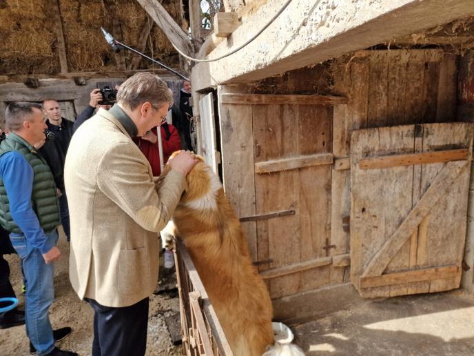 Predsednik je iskoristio priliku i da u štali Stamenkovića pomazi čuvara domaćinstva - Čupku.