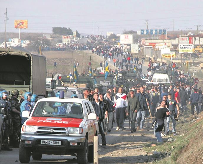Više hiljada Albanaca prešlo je preko mosta na Ibru iz južnog u severni deo grada, posle čega je došlo do sukoba sa Srbima. Unmikova policija je koristila šok-bombe i suzavac.