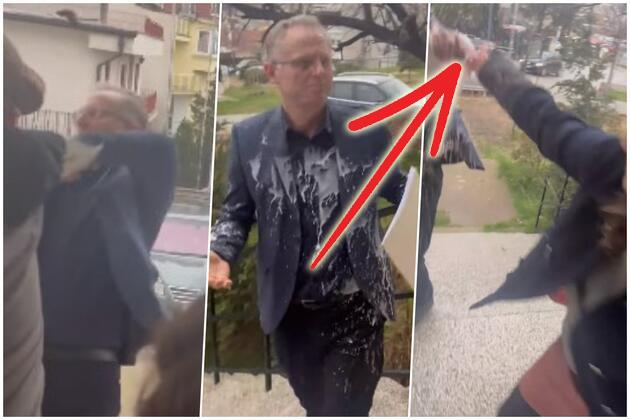 Na snimku koji je objavljen na društvenim mrežama vidi se šokirani Bisljimi koga jedan mladić najpre pogađa tortem u lice, a devojka zatim poliva mlekom.