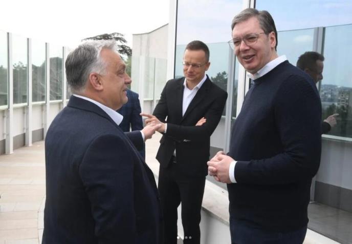 Vučić je na Instagramu napisao da sa Orbanom i mađarskim šefom diplomatije Peterom Sijartom razgovara o razvoju geopolitičke situacije, procenama, planovima, novim projektima i saradnji, o budućnosti.