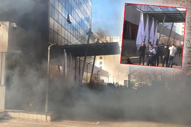 Zatim su aktivirali više dimnih bombi čime je kraće vreme deo i ulaz u zgradu vlade bio obavijen gustim crnim dimom.