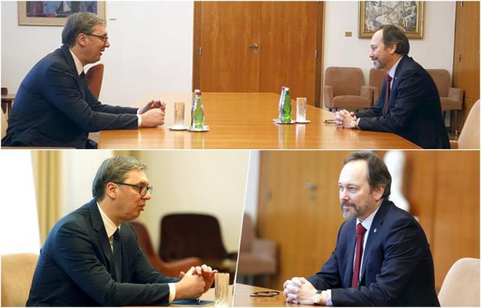 Predsednik Srbije Aleksandar Vučić sastao se danas sa šefom delegacije Evropske unije u Srbiji Emanueleom Žiofreom.