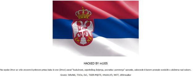Na svima je ostavljena ista poruka i potpis uz zastavu Srbije. U poruci piše -"HACKED BY m1l05.