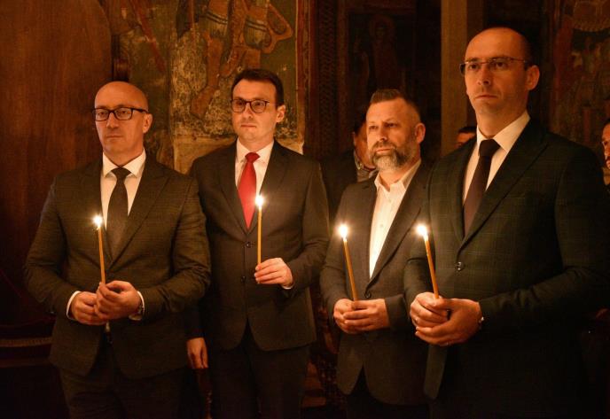 Direktor Kancelarije za Kosovo i Metohiju Petar Petković prisustvovao je ponoćnoj vaskršnjoj liturgiji koju je u manastiru Visoki Dečani služio iguman Sava Janjić sa sveštenstvom.