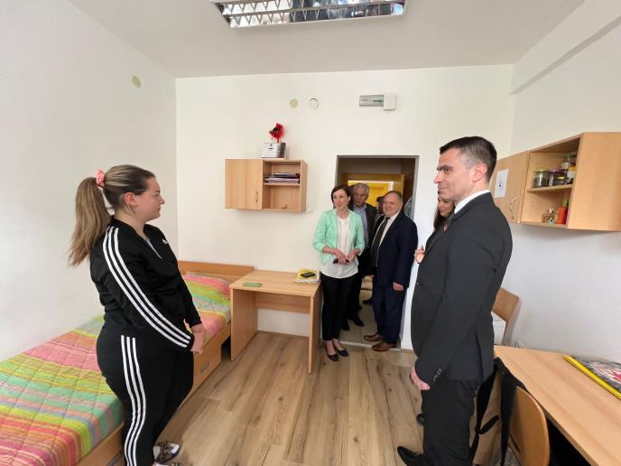 Ministar je sa domaćinima obišao i Dom učenika u Trsteniku koji je sagrađen i opremljen po najsavreminijim standardima, a u kome je planirano da budu smešteni učesnici jednog od letnjih kampova.