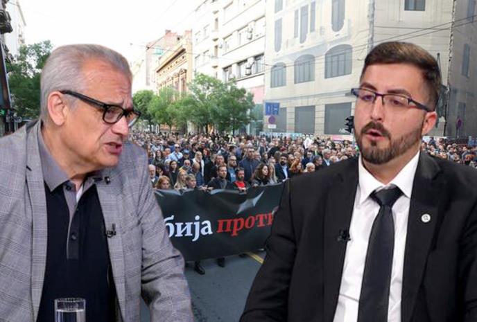 Aleksandar Gajović, novinar i publicista i Nebojša Obrknežev, iz Centra za društvenu stabilnost komentarisali su dešavanja ispred Vlade Srbije na jučerašnjem protestu 8. maja 2023. godine.
