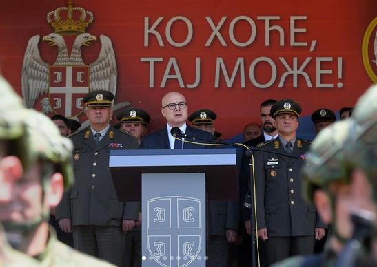 Ministar odbrane naglasio je da sa iskrenim poštovanjem i istinskim ponosom staje pred današnji stroj izabranih mladih rodoljuba, rešenih da svoju snagu i sposobnost, snažnu volju i čvrstinu karaktera kao profesionalni vojnici stave na raspolaganje Vojsci Srbije i otadžbini.