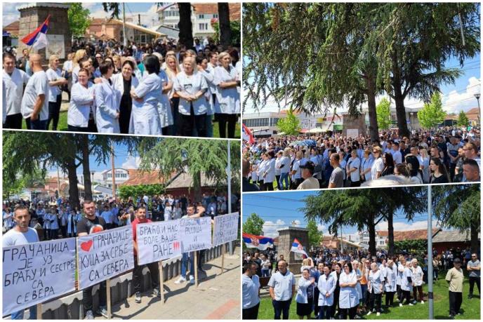 Radnici Doma zdravlja iz Donje Gušterice danas su krenuli prešice ka Gačanici gde će u 12 časova btii održan miran skup podrške Srbima sa severa KiM.
