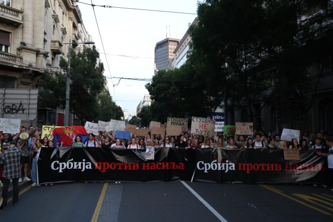 Posle obraćanja govornika ispred Narodne skupštine, protestna kolona je krenula u šetnju Bulevarom kralja Aleksandra u pravcu Pravnog fakulteta.