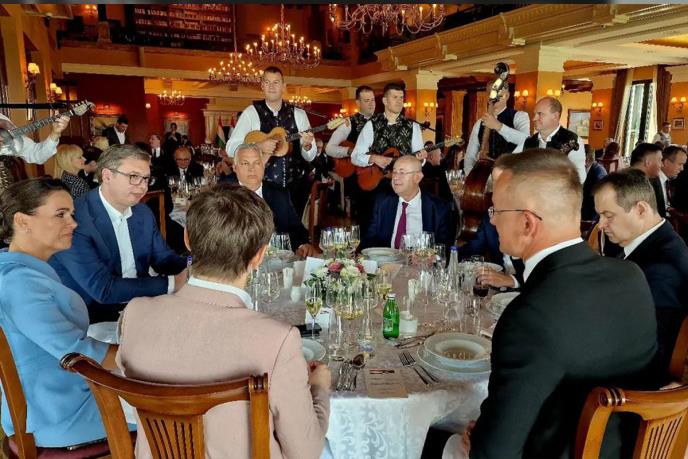 "Ovi divni momci pevaju srpske i mađarske pesme podjednako dobro, a Ana i ja uživamo sa Katalin Novak i Viktorom Orbanom u prijateljstvu i strateškom partnerstvu", napisao je Vučić na instagramu.