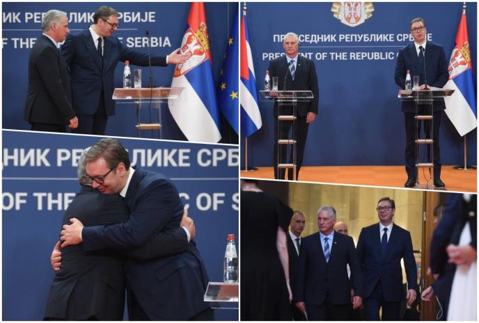 - Ponosan sam... ponosan na činjenicu da je ovo prva zvanična poseta kubanskog predsednika posle skoro četiri decenije, rekao je Vučić i dodao da ne zna zna li predsednik Kube koliko je njegova zemlja ovde popularna kao i njegov narod i koliko ih narod Srbije voli.