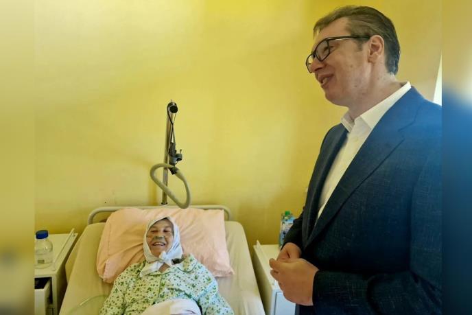 Predsednik Republike Srbije Aleksandar Vučić posetio je jutros na Institutu za ortopediju Banjica igumaniju Pećke patrijaršije mati Haritinu.