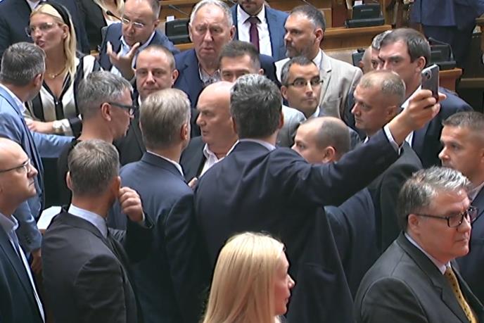 - Dok čovek koji ovde prebraja decu narodnim poslanicima sedi ovde u sali s nama, nećemo dozvoliti da Skupština zaseda. Ovaj čovek je najgrublje povredio dostojanstvo svakog građanina države Srbije - poručila je poslanica demokrata Tatjana Manojlović.