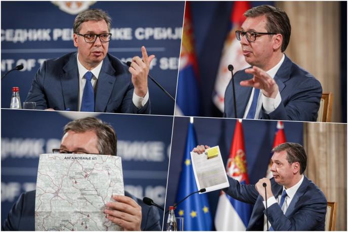 Predsednik je pokazao i najnoviju mapu od jutros, te nabrojao sve tačke i imena mesta koja su zauzeta na severu da Srbi više nikad tu ne mogu da podignu barikade ili da tu prođe neophodna i važna roba poput lekova koja im je preko potrebna a za koju bi Kurti želeo da oni bez nje ostanu.