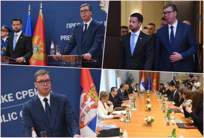 - Veliko mi je zadovoljstvo da ugostim Milatovića. Jačanje bilateralnih veza i tešnja saradnja od uzajamne koristi. Srbija i Crna Gora imaju veliku trgovinsku razmenu, imajući u vidu veličinu zemalja. Proporcionalno broju stanovnika rekao bih da imamo najveću u svetu. Crna Gora je važan partner ne samo zbog ekonomije, već i zbog tradicionalne bliskosti, povezanosti, velikog broja Srba koji živi u Crnoj Gori i obrnuto. Nama su to veoma važne stvari. Trudimo se da unapredimo naše odnose i da vidimo koji su to konkretni vidovi saradnje. Milatović je zatražio od nas najpovoljniju poziciju na EXPO 2027 u Beogradu, za predstavljanje Crne Gore pred celom Evropom i svetom. Obećao sam i razgovarao sam sa ministrom finansija da će CG svakako imati takvu poziciju.