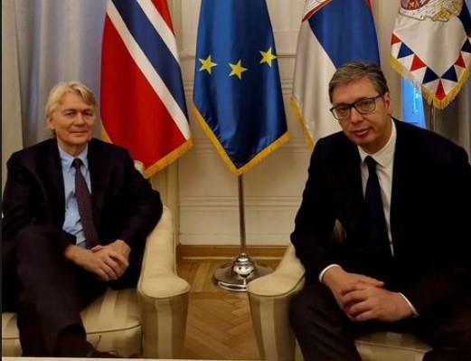 Predsednik Srbije Aleksandar Vučić primio je danas u oproštajnu posetu ambasadora Norveške Jerna Eugena Jelstada.