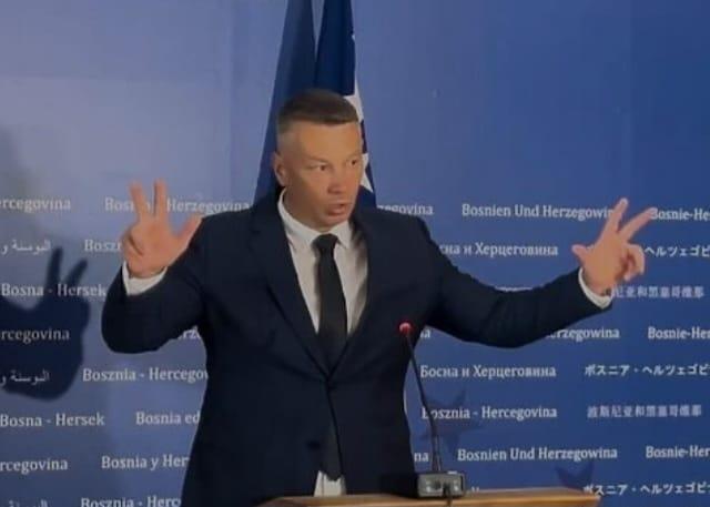 ''Umesto što drži lekcije predsedniku Srbije Aleksandru Vučiću, pokazujući zavidnu dozu neznanja, ministar inostranih poslova BiH Elmedin Konaković bi trebalo da se oglasi povodom gnusnih uvreda svojih sunarodnika na račun pobijene hrvatske dece u Vitezu. Znamo da Konakoviću smetaju tri prsta, simbol svetog trojstva, i da bi da nam zabrani da se krstimo s tri prsta, ali nismo čuli da je osudio žaljenje svog sunarodnika Samira Nukića što ``nisu pobili više dece'', niti mu smeta Nukićeva fotografija sa zoljom'', izjavio je ministar bezbednosti u SM BiH Nenad Nešić.