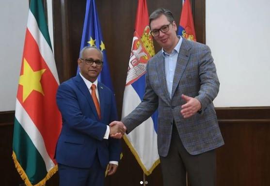 - Zadovoljstvo mi je što sam imao ponovo priliku da ugostim šefa diplomatije Surinama sa kojim sam razmenio mišljenja o pravcima daljeg razvoja tradicionalno prijateljskih odnosa ?? i ?? Surinam za nas ima poseban značaj, jer je povlačenjem priznanja tzv Kosova postao primer za preko 25 drugih zemalja koje su potom učinile isto. Iskoristio sam priliku i da zahvalim Vladi Surinama na podršci kandidaturi Beograda za organizaciju Međunarodne svetske izložbe Ekspo 2027 - napisao je Vučić na Instagramu.