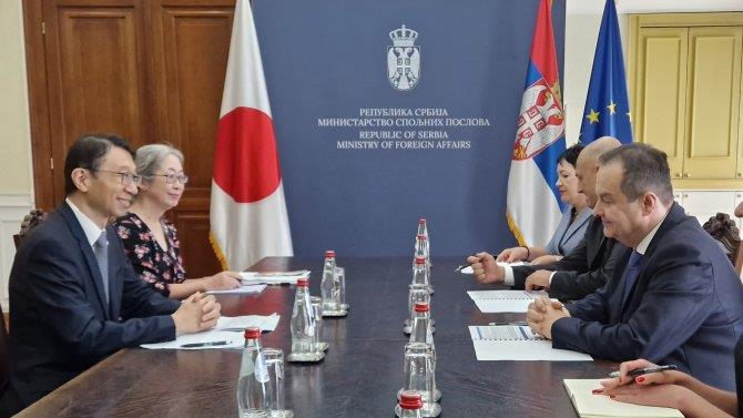On je dodao da će radu sa ciljem unapređenja odnosa Srbije i Japana Ministarstvo spoljnih poslova Srbije spremno da pruži svu pomoć i podršku. Sagovornici su ocenili da su savremeni bilateralni odnosi Republike Srbije i Japana u stalnom usponu, kao i da ih povezuje zajednički interes za dalje jačanje sveobuhvatne saradnje uz sadržajne i intenzivne međusobne kontakte na bilateralnom i multilateralnom planu.