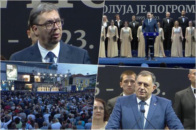 - Reći će egzodus, pogrom, progon, ali niko nikada vam reći da je to najveće etničko čišćenje na ovim prostorima. Sve moguće izraze ovog sveta će da upotrebe, samo nikad neće reći da je to bio zločin etničkog čišćenja. Ovo su ljudi - ne brojevi! - naglasio je srpski predsednik.