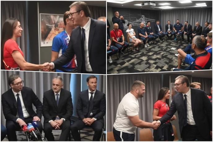 PREDSEDNIK SRBIJE U MAĐARSKOJ Vučić razgovarao sa srpskim atletičarima: Hvala na načinu na koji branite boje naše zemlje (FOTO)