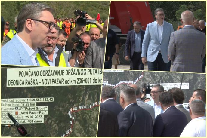 Predsednik Srbije Aleksandar Vučić obilazi rekonstruisani put Raška - Novi Pazar. Reč je o deonici puta Novi Pazar – Raška, koja je rekonstruisana nalazi se na magistralnom putu Beograd – Kraljevo – Raška – granica sa Crnom Gorom.