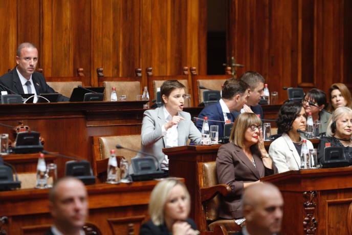 Deo opozicije, među kojima su skoro najbučnije bile Marinika Tepić i Dragana Rakić, bukvalno su opkolili premijerku Anu Brnabić i ministre koji su sedeli u klupama.