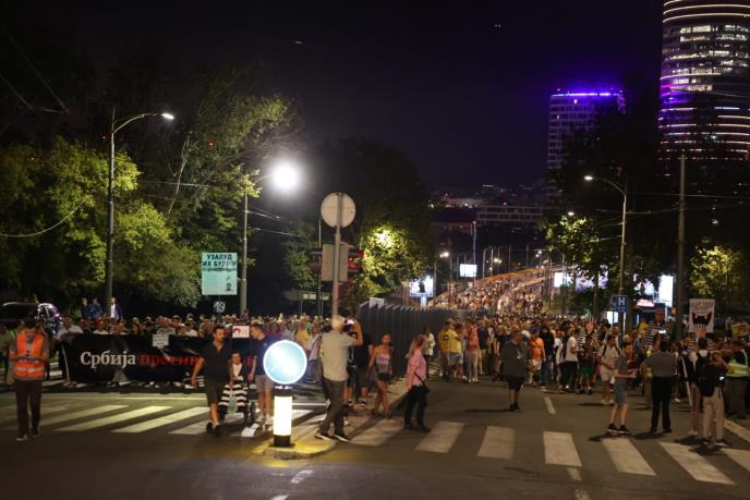 19.00 - Za razliku od svih prethodnih, učesnici protesta se ovaj put okupljaju ispred Vlade Srbije. Saobraćaj je blokiran na uglu ulica Kneza Miloša i Nemanjine. Prema najavi organizatora, kolona će prošetati do zgrade TV Pink.