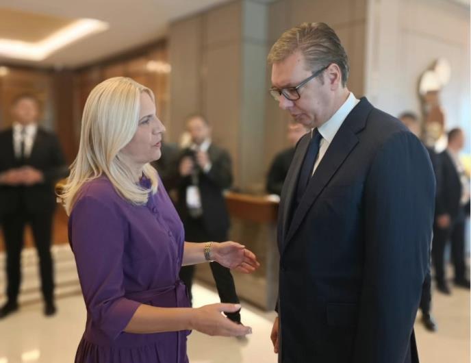 Uoči početka samit Procesa Brdo-Brioni u Skoplju, srpski član Predsedništva BiH Željka Cvijanović objavila je fotografiju sa susreta sa sa predsednikom Srbije Aleksandrom Vučićem.