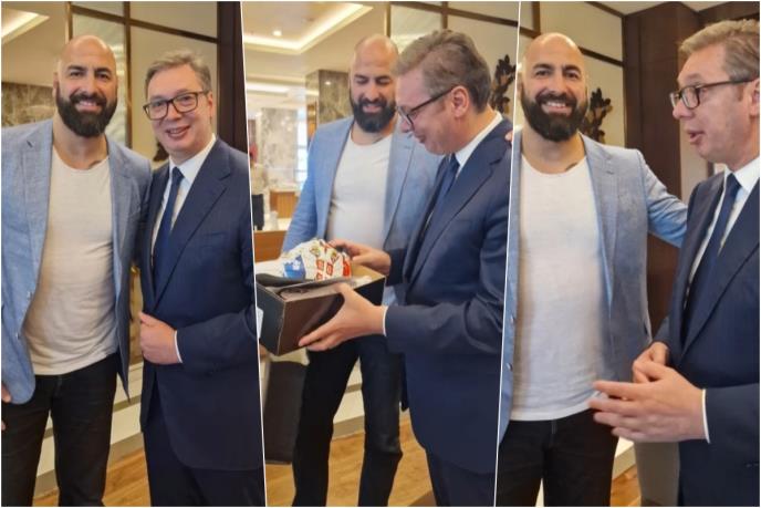 Predsednik nije skrivao osmeh zbog susreta sa Antićem a oduševio se i poklonom.