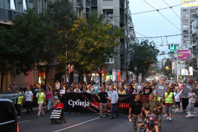 ODRŽAN 20. PROTEST U ORGANIZACIJI DELA OPOZICIJE: Učesnici prošetali do zgrade RTS, gde su im se obratili govornici