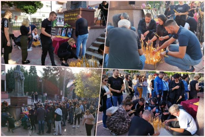Veliki broj meštana Zvečana, ali i drugih opština na severu KiM došlo je da zapali sveće i položi cveće i vence za Zvečanca Stefana Nedeljkovića (31) i Leposavce, Igora Milenkovića (50) i Bojana Mijailovića.