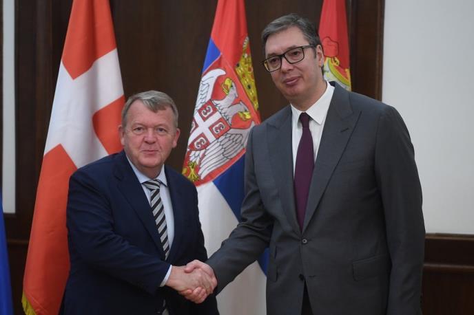 - Razgovarajući o bilateralnim odnosima, izrazio sam interesovanje za intenziviranje ekonomske saradnje sa Kraljevinom Danskom koja ima značajne potencijale, posebno zbog dosadašnjih uspešnih danskih investicija u Republici Srbiji, dodao je predsednik Vučić posle sastanka sa Larsom Lekeom Rasmusenom.
