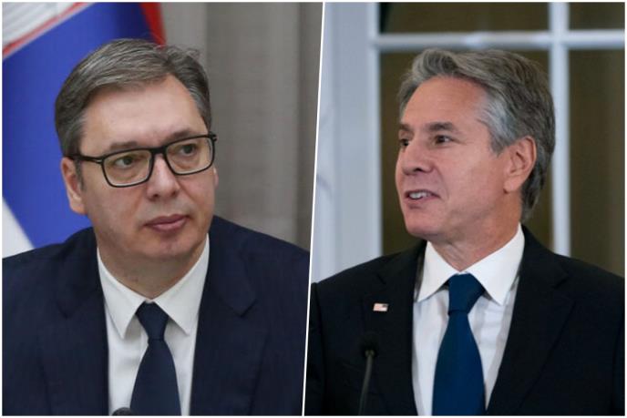 Predsednik Srbije Aleksandar Vučić preneo je danas novinarima da je razgovarao sa državnim sekretarom SAD Entonijem Blinkenom, sa kojim se saglasio da je potrebna deeskalacija na Kosovu, ali ne i u vezi akcije kosovske policije na severu Kosova.