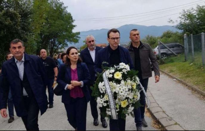 On je na sahranu došao sa velikim belim vencem u rukama, a sa njim u društvu ispraćaju prisustvuju i njegovi saradnici iz Kancelarije za KiM.