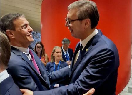 Predsednik Srbije Aleksandar Vučić sastao se sa premijerom Vlade Kraljevine Španije Pedrom Sančezom na Samitu evropske političke zajednice u Granadi.