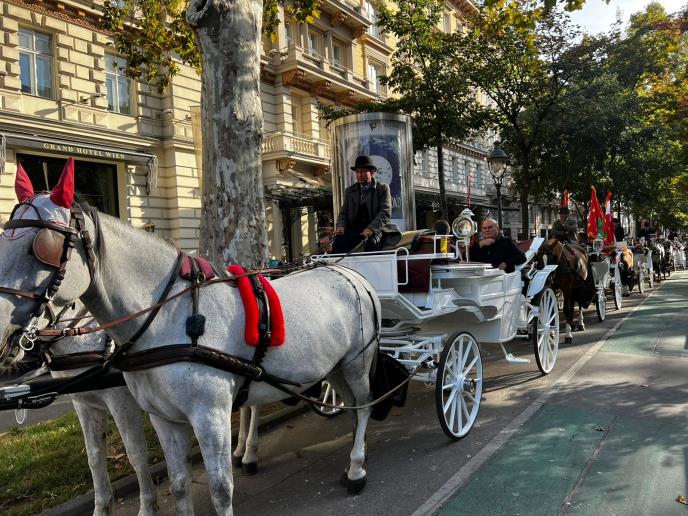Danas su srpski poljoprivrednici koji se deo delegacije u poseti glavnom gradu Austrije, kao i sam grad Beč doživeli nešto što se retko viđa. Bečki konjušari su sa 25 fijakera vozili srpske poljoprivrednike kroz austrijsku prestonicu, a u fijakerima zastave Srbije, Austrije i grada Jagodine.