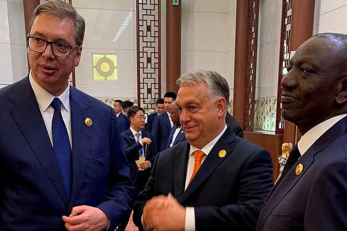 Sa prijateljima Viktorom Orbanom, Antoniom Guterešom, Jokom Vidodom, Kasimom Tokajevim i predsednikom Kenije Vilijamom Rutom razgovarao sam o značaju inicijative kakva je Pojas i put i mestu i ulozi država članica UN u današnjem svetu", napisano je u opisu fotografija.