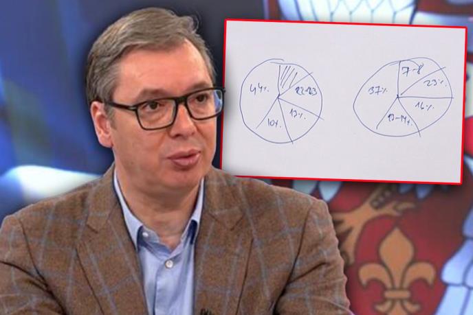 - Oni će preko Šolakovih medija, svih tih portala i televizija da podržavaju, ne samo taj evropski blok, nego i desničare, koje su do juče pljuvali. Sve zbog konačnog cilja da se SNS svede na nekih 37 odsto, deo glasova će da se prelije na SPS, recimo 13-14 odsto, desničari 16 odsto i onda više nema stabilne većine - rekao je predsednik Vučić i na papiru nacrtao šta je ideja opozicije za izbore koji su najavljeni za decembar.