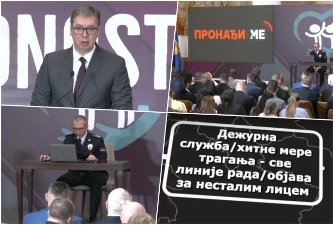 Predsednik Srbije Aleksandar Vučić prisustvuje prezentaciji i puštanju u rad sistema "Pronađi me" za hitno obaveštavanje javnosti u slučaju nestanka maloletnog lica.