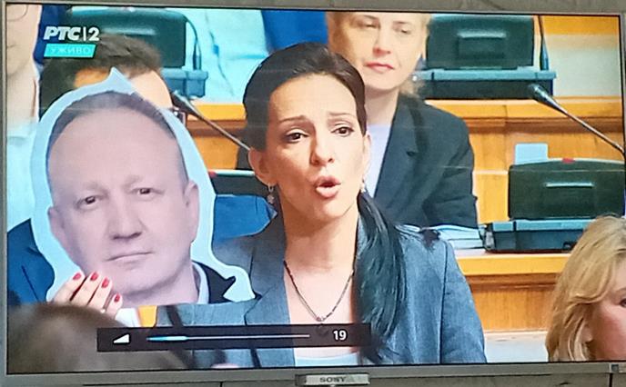 Tepićeva je, naime, odsekla glavu figuri. Unela je "glavu" Dragana Đilasa koju je i pokazala i kojom je mahala tokom svog izlaganja.