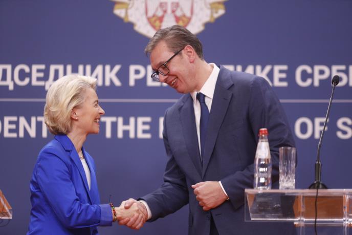 Predsednik Republike Srbije Aleksandar Vučić danas je srdačno dočekao predsednicu Evropske komisije Ursulu fon der Lajen.