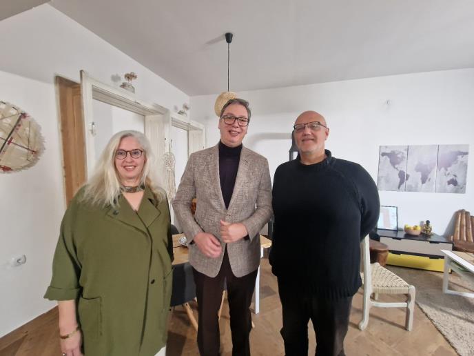 "Upoznao sam tu divnu porodicu, Srbina iz Beograda koji je 30 godina živeo u Parizu, Pavla Kovačevića, i došli su u Krupanj da žive sa svoje dvoje dece, Mateom i Melinom, danas su građani Pirota i ne nameravaju da ga napuste, naprotiv, hoće da tu napravi svoj muzički studio i ostaje Piroćanac i građanin Srbije i on i njegova deca!", rekao je predsednik.