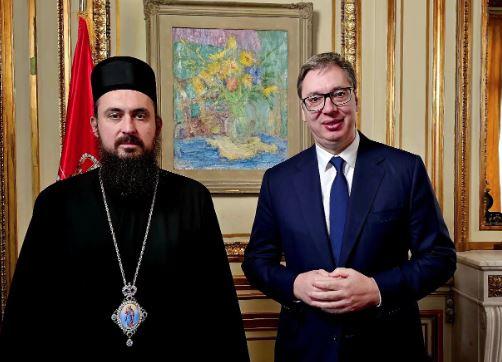 Predsednik Srbije Aleksandar Vučić sastao se danas u Parizu sa episkopom zapadnoevropskim Justinom sa kojim je razgovarao o podršci koju crkva pruža Srbima koji žive u Zapadnoj Evropi.