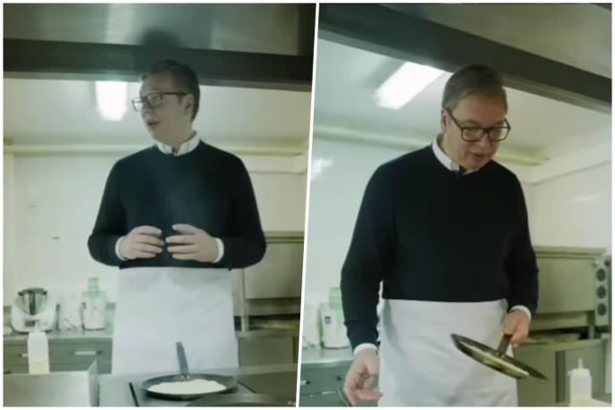 Predsednik Vučić poručio je kuvarima da sutra za goste bolje palačinke napravete ih potom šaljivo upitao da li su naučili na njegovim greškama.