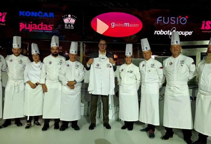 "SHVATILI SU DA SU MOJE PALAČINKE NAJBOLJE": Vučić sa kuvarima uoči početka Gastronomskog sajma i Sajma vina u Beogradu (FOTO)