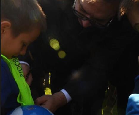 - A znaš koliko sam ja tebe želeo da vidim, kazao mu je predsednik posle čega je mali Veljko otrčao po marker da mu se predsednik potpiše na dres.